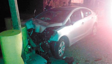 Juan José “N”, de 19 años y Mariano “N”, de 18, resultaron lesionados tras chocar su auto Kia, color gris, contra un poste de concreto en la avenida Río Mayo de la colonia Vista Hermosa, durante la madrugada de ayer.