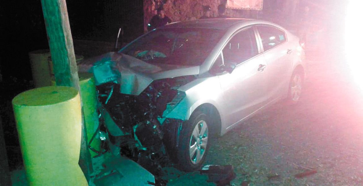 Juan José “N”, de 19 años y Mariano “N”, de 18, resultaron lesionados tras chocar su auto Kia, color gris, contra un poste de concreto en la avenida Río Mayo de la colonia Vista Hermosa, durante la madrugada de ayer.