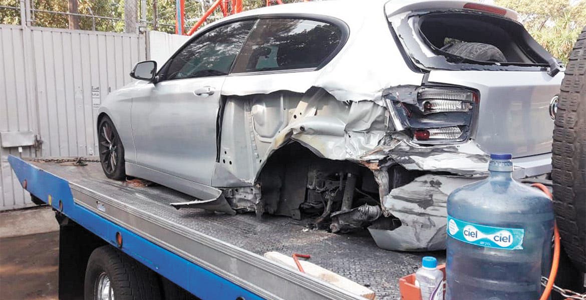 Al perder el control cuando circulaba en la autopista México-Cuernavaca, con dirección a Cuernavaca, el conductor de un BMW chocó contra el muro de contención en el kilómetro 54, a la altura de Coajomulco.