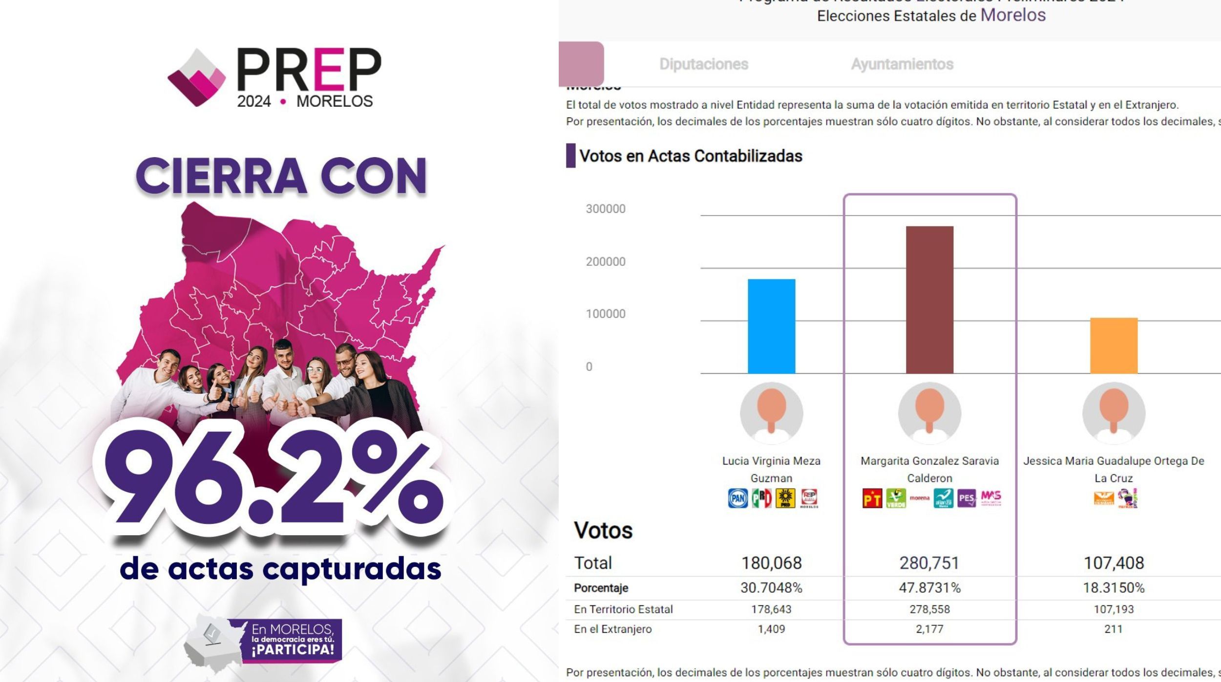 Con el 96 por ciento de las actas capturadas cerró el Programa de Resultados Electorales Preliminares (PREP) en Morelos.