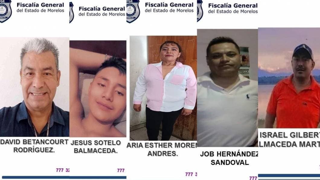 Se trata de Job Hernández Sandoval, de 40 años de edad, María Esther Moreno Andrés, de 42, David Betancourt Rodríguez, de 53 años, Israel Gilberto Balmaceda Martínez, de 29, y Jesús Sotelo Balmaceda, todos con domicilio en Emiliano Zapata.