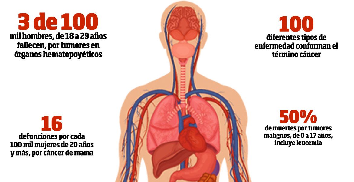 De 2011 a 2016, dos de cada 100 mil habitantes de 0 a 17 años fallecen anualmente por un tumor en órganos hematopoyéticos (conformado entre otros, por la leucemia).
