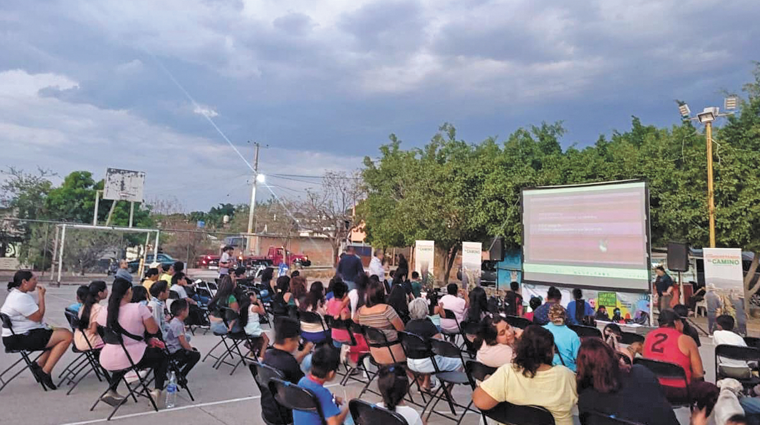 La cita fue en la emblemática cancha “El Triángulo”, donde niños, jóvenes y adultos se reunieron para disfrutar de una experiencia cinematográfica al aire libre, con la particularidad de ser un evento completamente sustentable.
