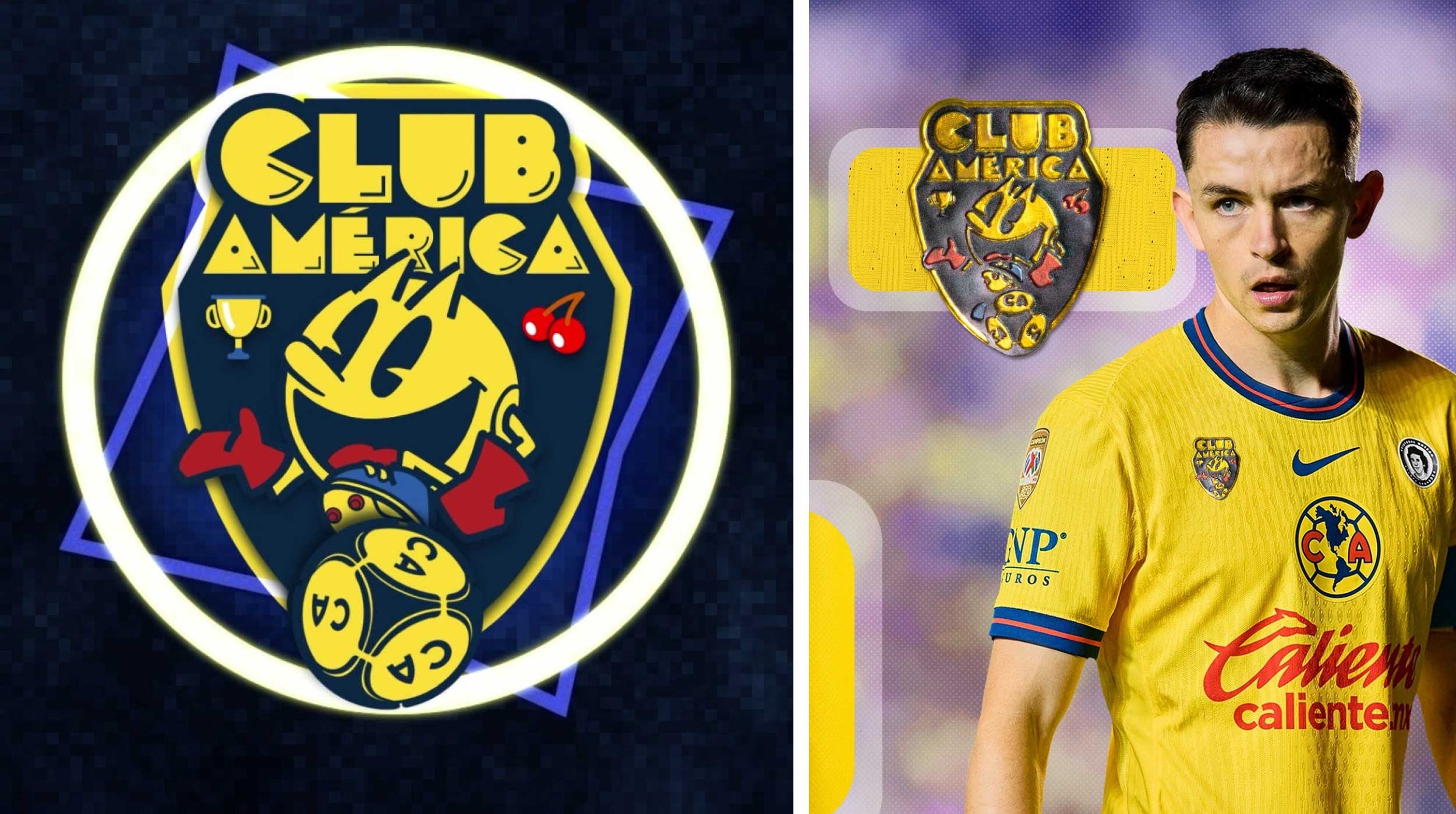 - Escudo conmemorativo: una fusión visual entre la historia de PAC-MAN y el emblema del América.