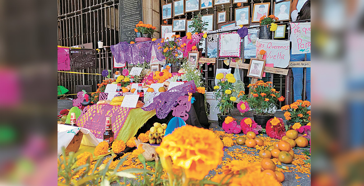 Llegaron ayer al memorial de víctimas, ubicado en las puertas del Palacio de Gobierno; colocaron flores, pan, fruta, comida, ente otras cosas que les gustaban a sus familiares, y formaron una gran cruz con veladoras.