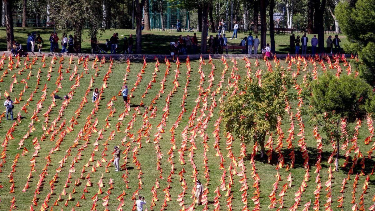 Una bandera de España en recuerdo de cada uno de los 53.000 españoles muertos por #COVID19 silenciados por el Gobierno de Sánchez-Iglesias pic.twitter.com/UMTLpIJWNJ