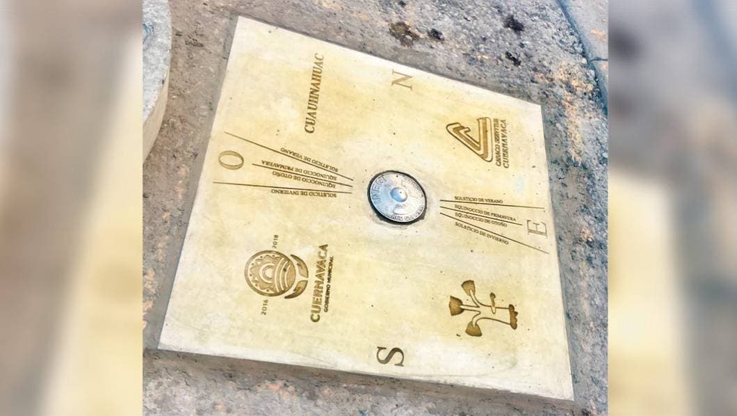 Cuernavaca, Morelos.- Autoridades municipales colocaron una placa en la Avenida Morelos, frente al Jardín Borda, para ubicar el descubrimiento de la Traza Astronómica de Cuauhnáhuac que representará los ejes del equinoccio.