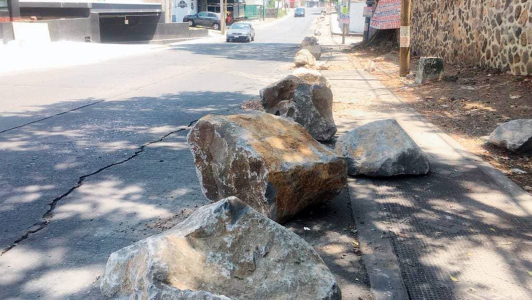 CUERNAVACA, MORELOS.- Vecinos de la colonia Vista Hermosa de Cuernavaca denunciaron que, arbitrariamente, fueron colocadas rocas en la avenida San Diego; temen riesgo para transeúntes y automovilistas.