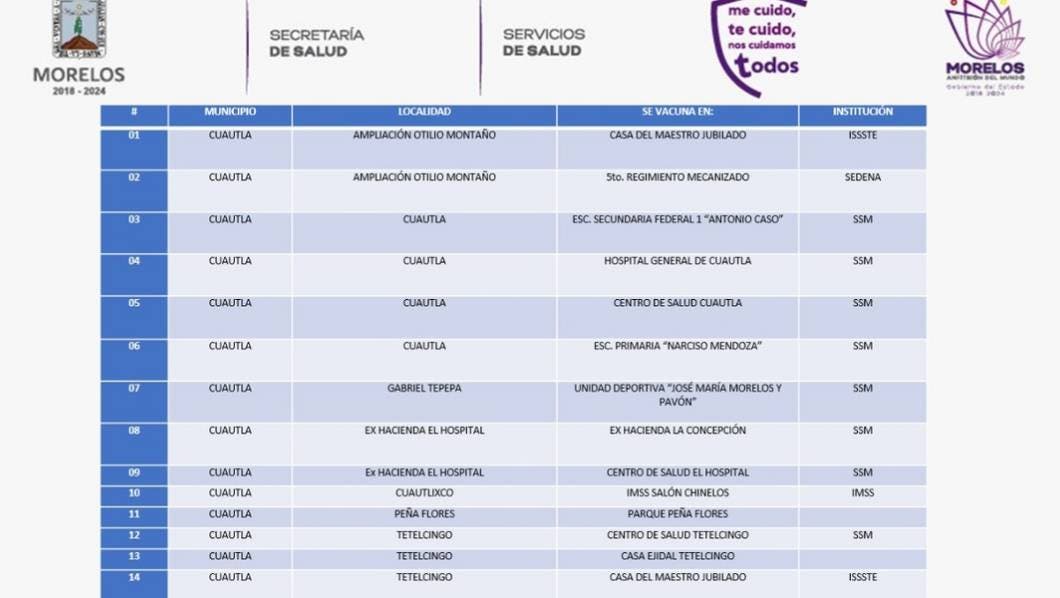 El viernes pasado se dieron a conocer las sedes donde se aplicarán las vacunas contra COVID19 a adultos mayores en Cuautla.