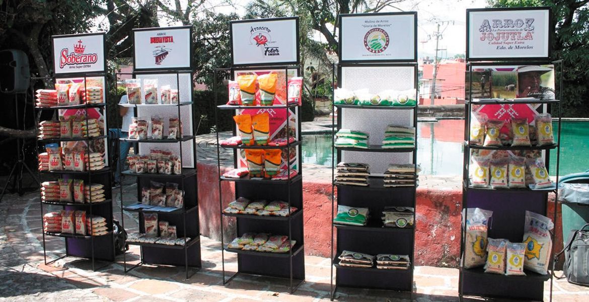 Exhibición. Cinco marcas de arroz de Morelos son: Soberano, Arroz Buena Vista, Arrocera Flor India, Arroz Garza de Oro de Morelos y Arroz La Perseverancia.