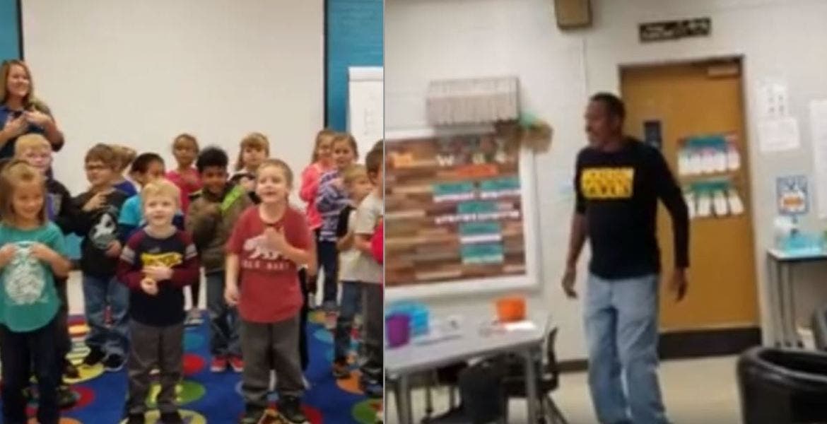 Un conserje parcialmente sordo en la Escuela Primaria Hickerson, Estados Unidos fue sorprendido en su cumpleaños número 60 cuando unos pequeños alumnos de preescolar le cantan “Feliz cumpleaños” en lenguaje de señas.