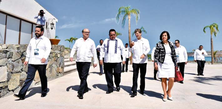 Comisión. En La Paz, el presidente de la Conago, Graco Ramírez, con gobernadores y Enrique de la Madrid, secretario de Turismo.