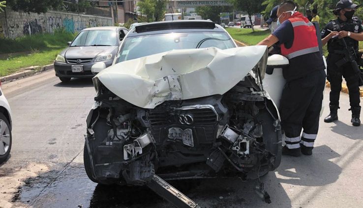 Al impactarse contra un camión que dio vuelta sin precaución sobre Paseo Cuauhnáhuac, a la altura de la colonia Progreso, de Jiutepec, el conductor de un automóvil Audi, color blanco, resultó lesionado la mañana de ayer. Ambas unidades fueron resguardadas para deslindar responsabilidades.