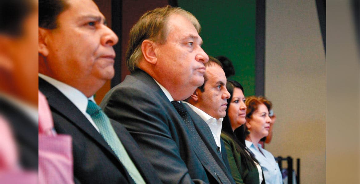 Parte. Con el alcalde y gobernador electo, Cuauhtémoc Blanco, los colaboradores que ocuparán parte de su gabinete.