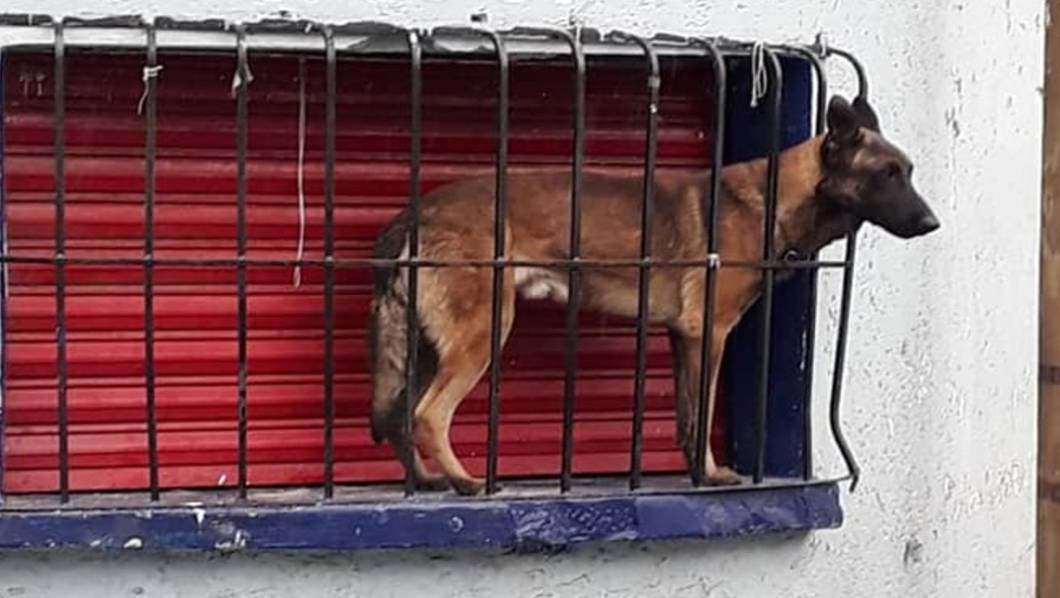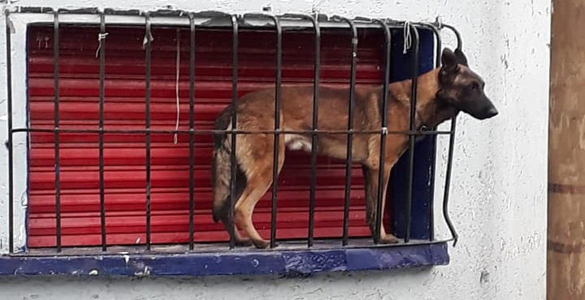 Cuando el can regresó, sus dueños no se encontraban en el domicilio y al estar lloviendo se resguardo en un local, al percatarse de la situación los dueños del local lo ponen bajo su protección hasta que la dueña llegó por él.