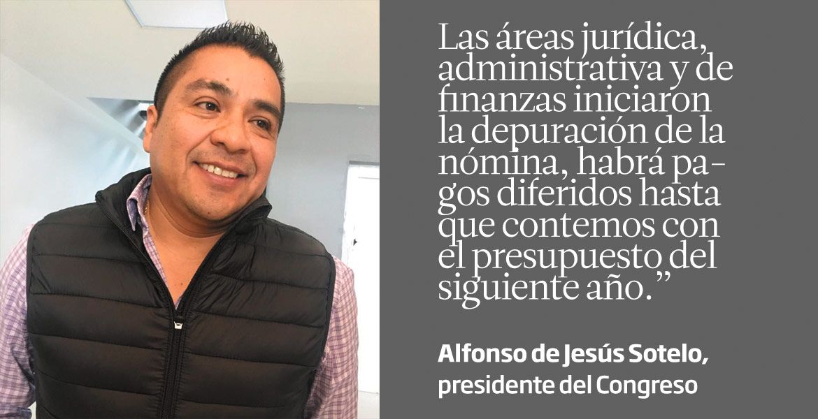 "Las áreas jurídica, administrativa y de finanzas iniciaron la depuración de la nómina, habrá pagos diferidos hasta que contemos con el presupuesto del siguiente año.” Alfonso de Jesús Sotelo, presidente del Congreso
