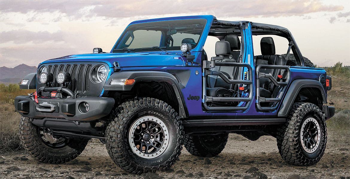Por ejemplo sus puertas con tubos de acero, su paragolpes delantero personalizado con cabrestante incluido, luces auxiliares, así como gráficos especiales ‘JPP’ con la bandera estadounidense por la carrocería, asientos de cuero Katzkin bordados o un kit de elevación para la carrocería con amortiguadores FOX acompañado de llantas especiales JPP y neumáticos off road de BF Goodrich.