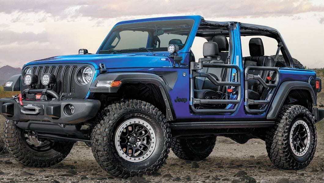 Por ejemplo sus puertas con tubos de acero, su paragolpes delantero personalizado con cabrestante incluido, luces auxiliares, así como gráficos especiales ‘JPP’ con la bandera estadounidense por la carrocería, asientos de cuero Katzkin bordados o un kit de elevación para la carrocería con amortiguadores FOX acompañado de llantas especiales JPP y neumáticos off road de BF Goodrich.