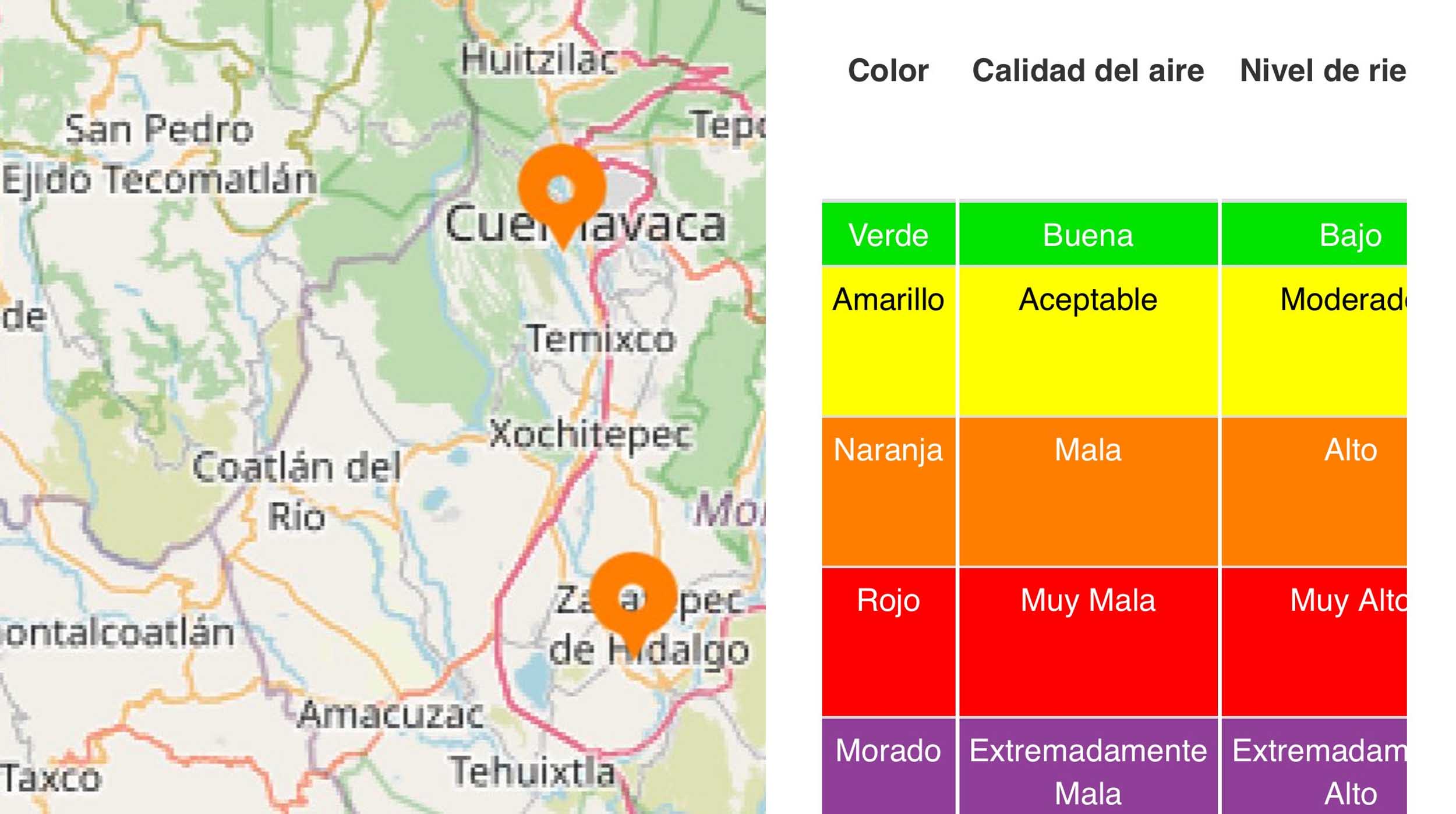 Durante este jueves, Cuernavaca y Zacatepec, presentaron mala calidad del aire. Según datos proporcionados por el Sistema Nacional de Información de la Calidad del Aire (SINAICA), la concentración de contaminantes alcanzó niveles críticos, representando un alto riesgo para la salud de los habitantes de estas localidades.