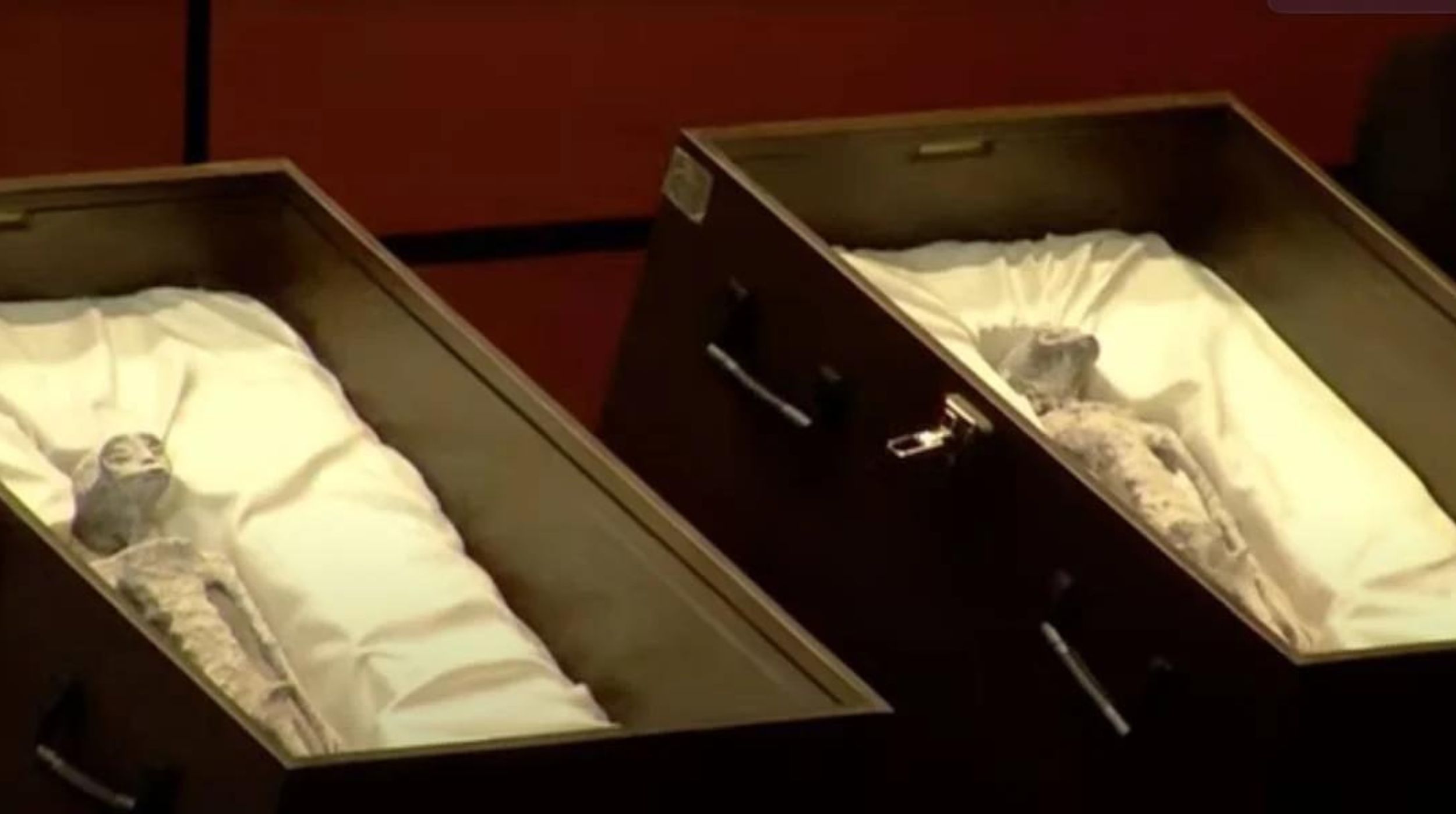 Con plena seguridad, Jaime Maussan presentó en la Cámara de Diputados dos cuerpos momificados en dos cajas tras asegurar que tienen más de mil años. Estos cuerpos, dijo, fueron hallados en una mina de Perú, entre las ciudades de Palpa y de Nasca, en 2017.