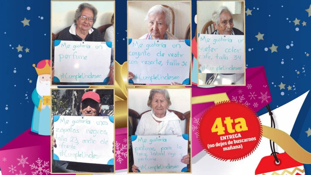 Puedes participar donando a un abuelito (a), lo que le gustaría recibir para el seis de enero.