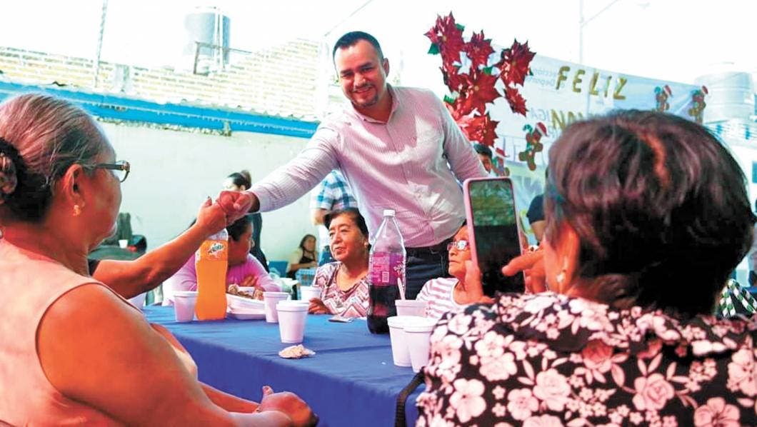 El alcalde Sergio Alba Esquivel convivió con adultos mayores del municipio de Emiliano Zapata inscritos en alguna actividad física, esto con motivo de la fiesta de fin de año,