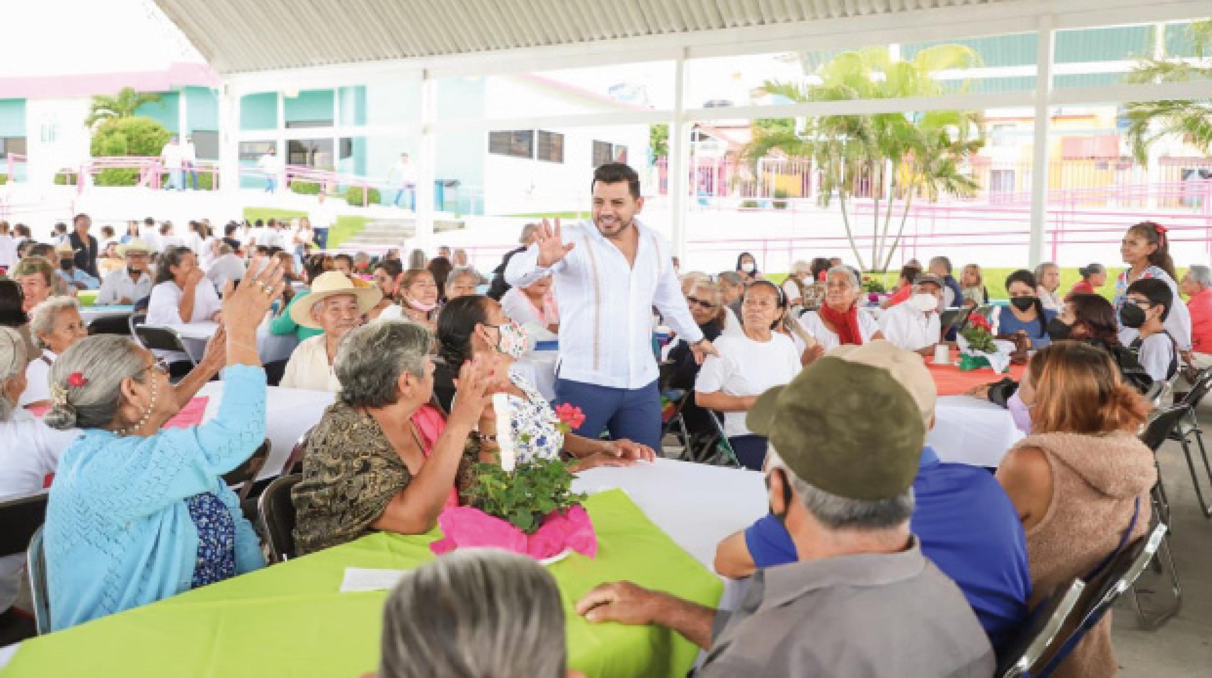 Más de 400 personas de la tercera edad de Xochitepec tuvieron un convivio con el alcalde Gonzalo “Chalo” Flores Zúñiga, durante el cual disfrutaron de un almuerzo, música, baile y chinelos como parte de la celebración del Día Nacional del Adulto Mayor. “Es una bendición poder contar con cada uno de ustedes, es una bendición tenerlos. Quiero felicitarlos. Yo ya no tengo a mis abuelitos, pero desde allá están disfrutando. Me siento contento de poder compartir un pequeño detallito con ustedes”, dijo el alcalde durante el evento conmemorativo.