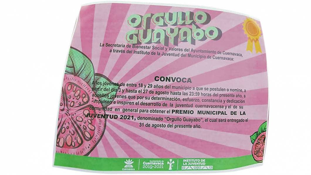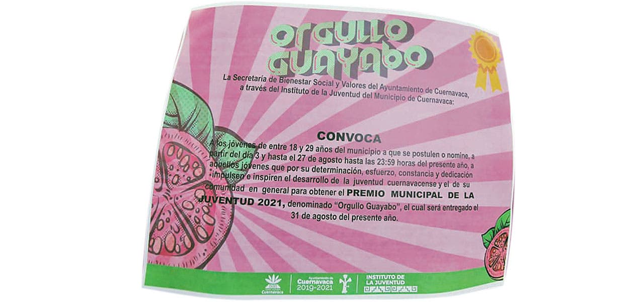 CUERNAVACA, MORELOS.- Para reconocer el esfuerzo, constancia y dedicación que inspire al desarrollo de la juventud, el Ayuntamiento de Cuernavaca emitió la convocatoria del certamen ‘Orgullo Guayabo’, el cual estará abierto hasta el viernes 27 de agosto.