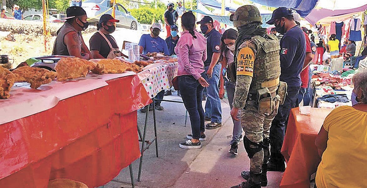 Asimismo, recorrió mercados, tianguis, plazas comerciales y establecimientos con diverso tipo de giro comercial, donde se invitó a los propietarios, empleados y ciudadanos en general a portar el escudo de la salud, que consta del uso correcto de cubrebocas, lavado constante de manos con agua y jabón o uso de alcohol gel al 70 por ciento, sana distancia de 1.5 metros entre una persona y otra, y estornudo de etiqueta, para lo cual se debe cubrir la nariz y boca con un pañuelo desechable o con el ángulo interno del brazo.