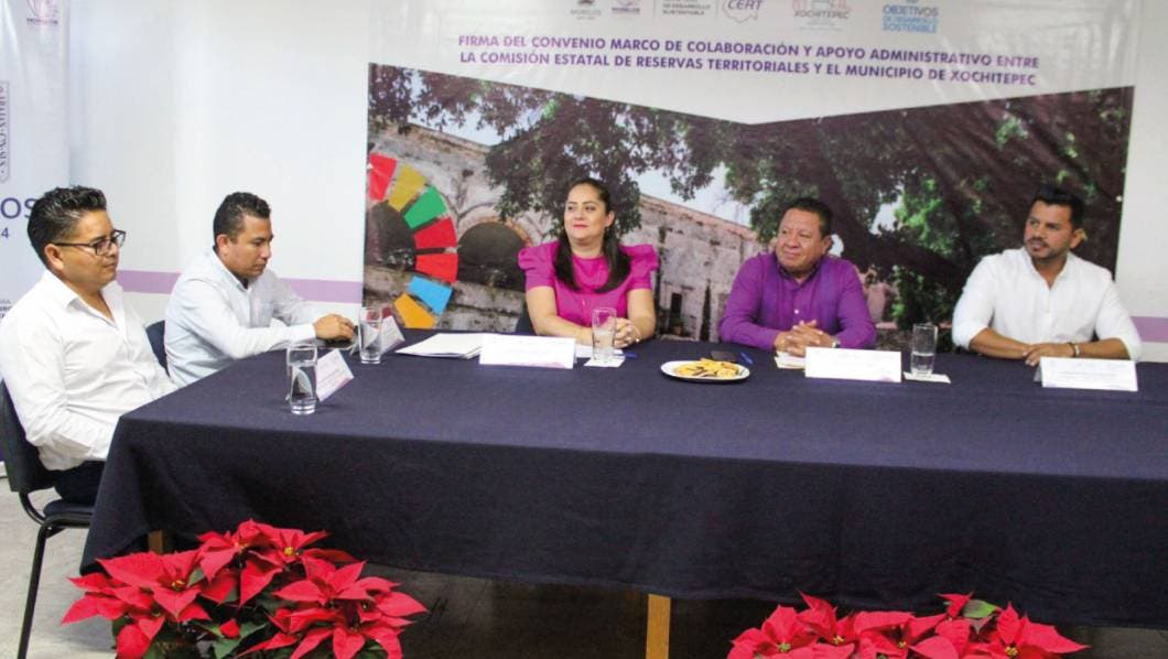 El titular de la Secretaría de Desarrollo Sustentable (SDS), José Luis Galindo Cortez, participó como testigo de honor en la firma de un convenio de colaboración entre la Comisión Estatal de Reservas Territoriales (CERT) y el Ayuntamiento de Xochitepec, el cual permitirá la regularización de más de 500 predios en dos unidades habitacionales en dicho municipio.