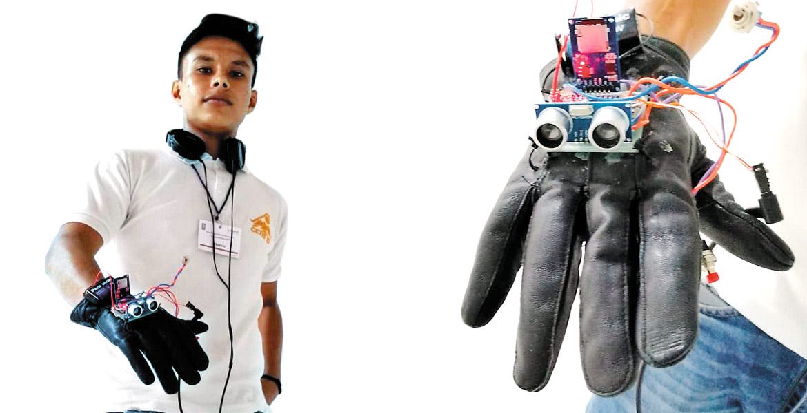 Este guante brinda indicaciones a través de voz, pues mide los centímetros de distancia a los que se encuentran de un objeto al caminar, además los usuarios también pueden programarlo y alertarse de sus movimientos con un sonido agudo cuando se acercan a un obstáculo.