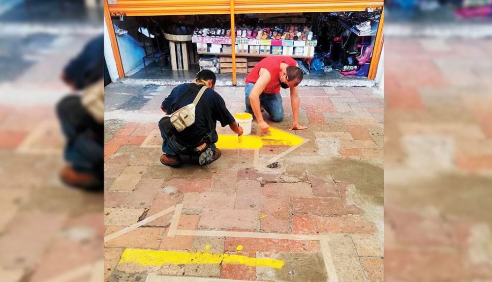 Estrategias. Locatarios del ALM ya comenzaron a pintar las señalizaciones de los circuitos para que clientes caminen.