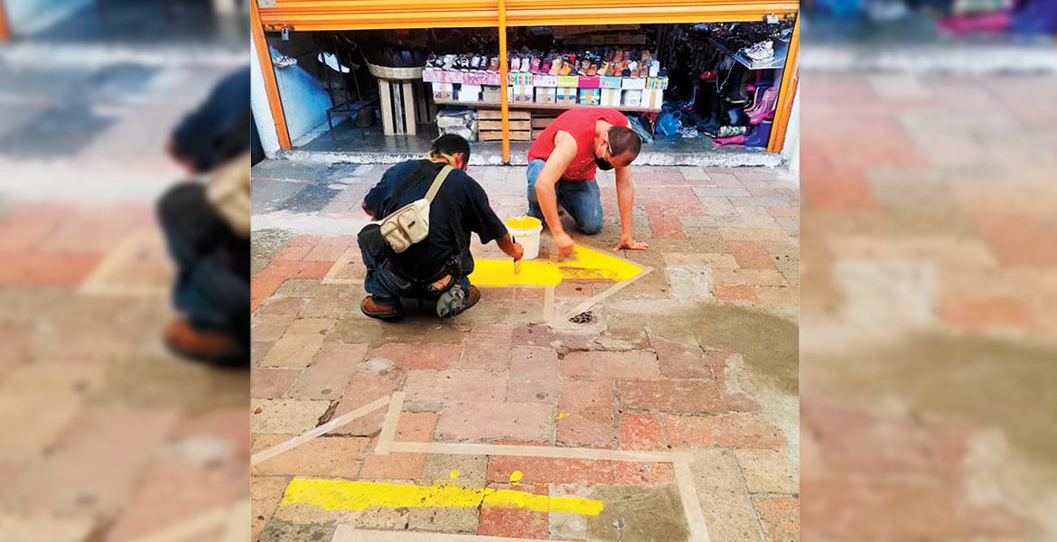 Estrategias. Locatarios del ALM ya comenzaron a pintar las señalizaciones de los circuitos para que clientes caminen.