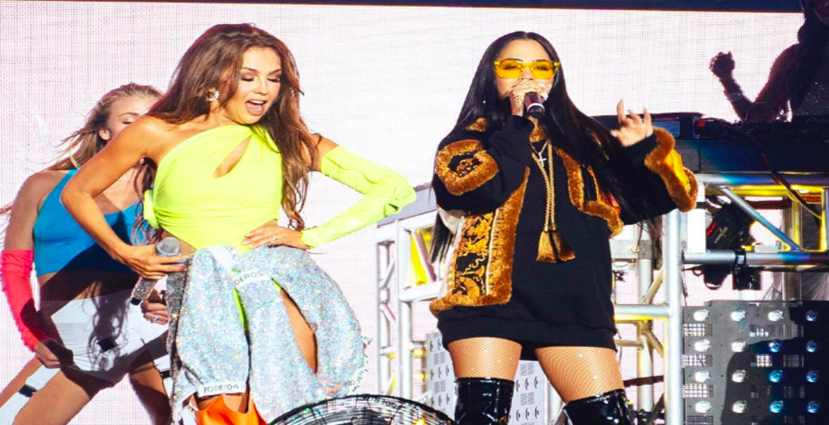 Mientras cantaban a dueto el tema 'No Me Acuerdo', ocurrió una falla técnica, dejando al descubierto las voces de las cantantes sin pista musical.