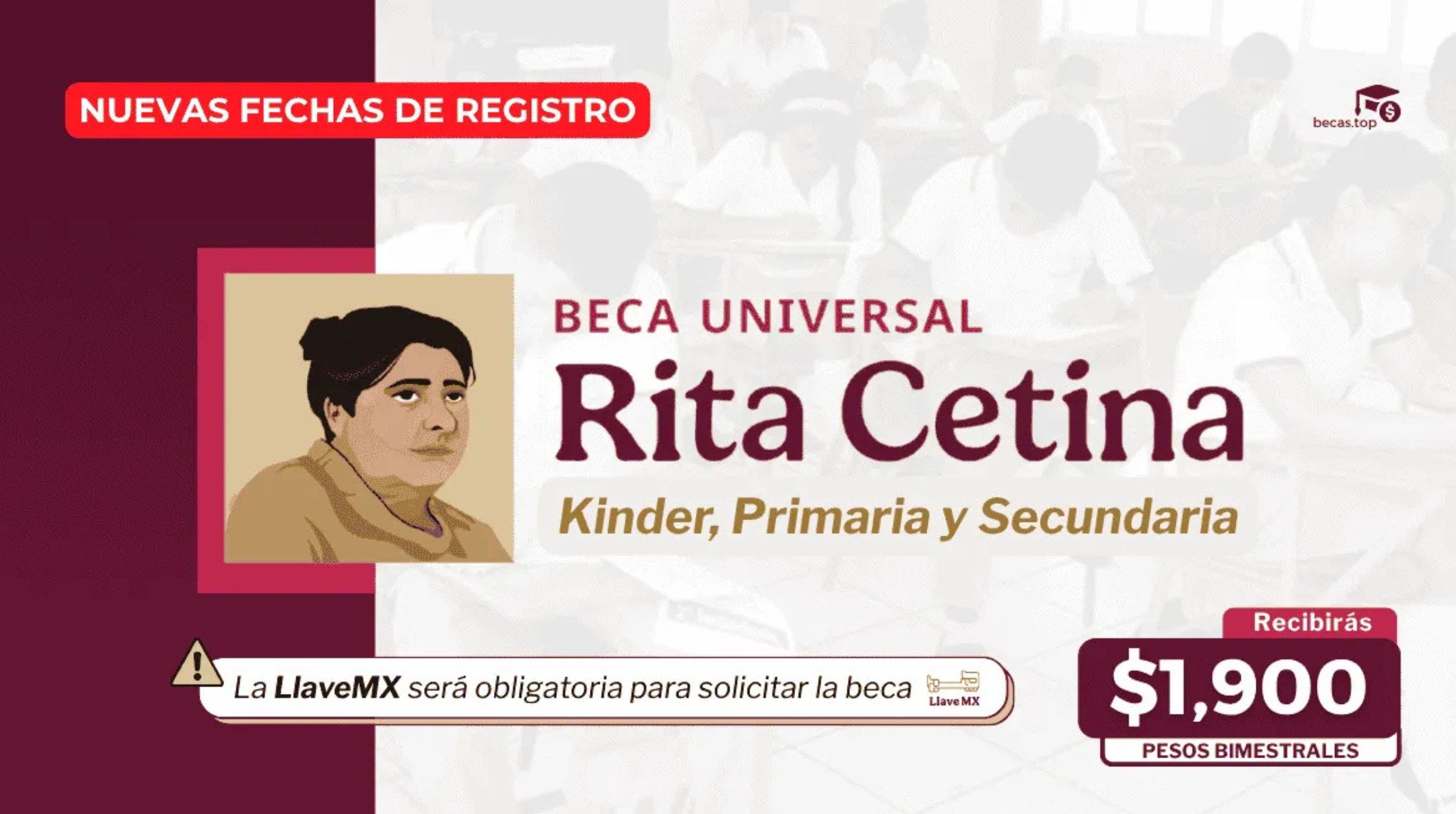 La Beca Universal de Educación Básica “Rita Cetina” es un programa prioritario del Gobierno de México, diseñado para apoyar económicamente a familias con estudiantes en escuelas públicas de nivel preescolar, primaria y secundaria. Este apoyo busca reducir la deserción escolar y garantizar el acceso a la educación básica, ofreciendo 1,900 pesos bimestrales por familia, con un adicional de 700 pesos por cada estudiante extra en el hogar.