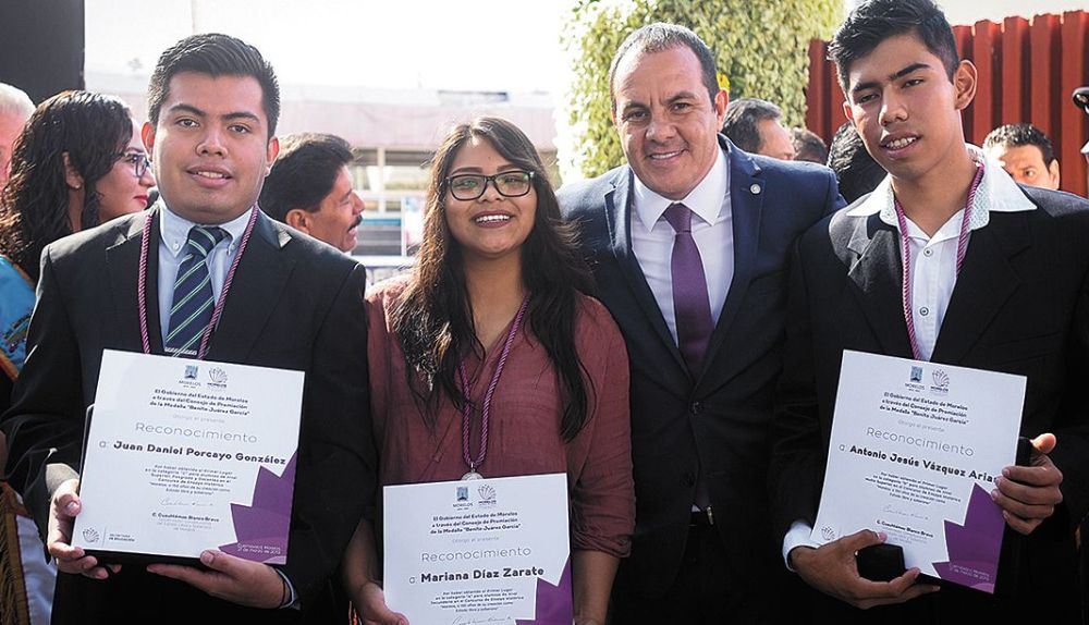 En este marco, el jefe del Ejecutivo también entregó la ‘Medalla Benito Juárez García’ a estudiantes ganadores que participaron en la elaboración de un ensayo en el que abordaron la vida y obra de Benito Juárez.