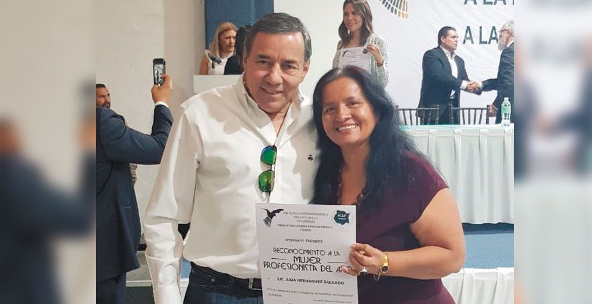 Acompaña. Jorge López Flores, vicepresidente del Grupo Diario de Morelos, con la Lic. Aída Hernández Salgado, Mujer Profesionista del Año.