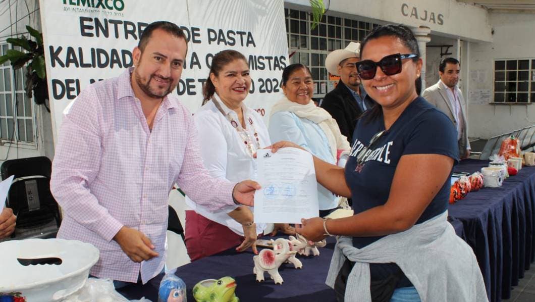 Con el fin de incrementar la producción y apoyar en la economía familia, la alcaldesa de Temixco, Juanita Ocampo Domínguez, encabezó la entrega de pasta “Kalidad 34M” a ceramistas de la demarcación.