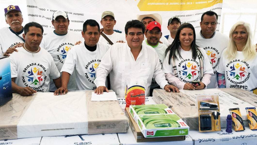Apoyos. El alcalde de Jiutepec, Manuel Agüero Tovar, entregó paquetes a familias que resultaron con daños en sus viviendas.