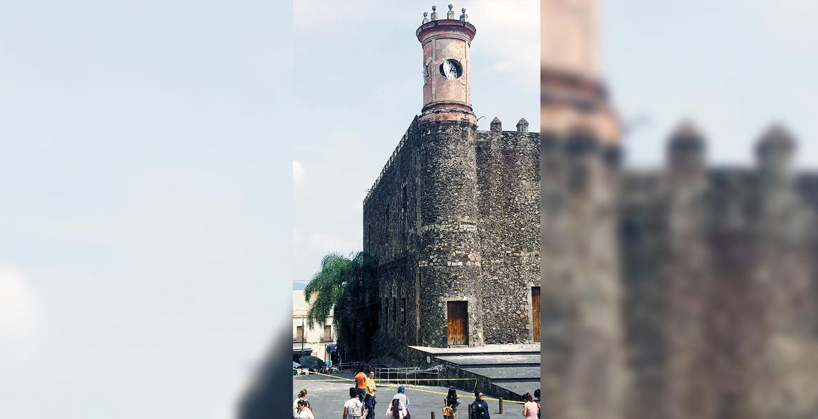 Derivado del sismo el histórico reloj de Palacio de Cortés se dañó y quedó a punto de colapsar, además la torre donde se encuentra se resquebrajó, por lo que ante el riesgo de que se desplomaran pedazos de concreto y piedra de la fachada, autoridades acordonaron la zona y cerraron el paso a un costado por el callejón de los Abogados en el Centro de Cuernavaca.