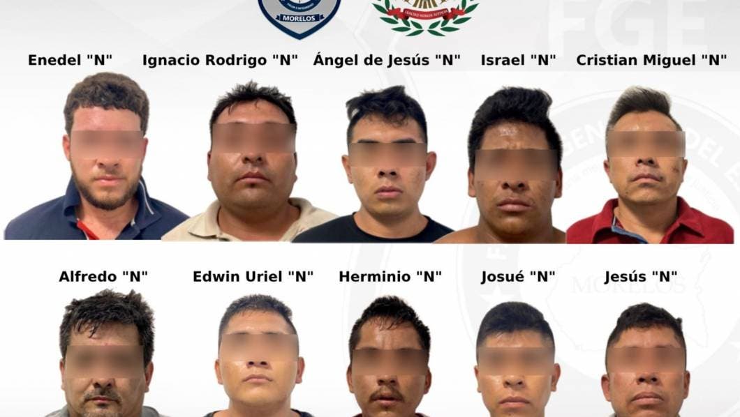 Resultado de la intervención táctica, se logró la detención de 10 presuntos secuestradores identificados como Enedel “N” alias “El Güero”, de 25 años de edad, originario de Badiraguato Sinaloa; Ignacio Rodrigo alias “El Pelos”, de 37 años de edad de Puente de Ixtla; Ángel de Jesús “N” alias “El Topo”, de 25 años con domicilio en el municipio de Tlaquiltenango; Israel “N” alias “Torres”, de 23 años, originario de Acapulco Guerrero y avecindado en el Municipio de Tlaquiltenango.