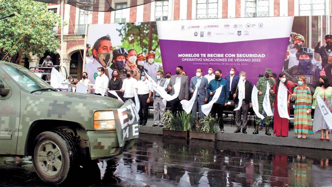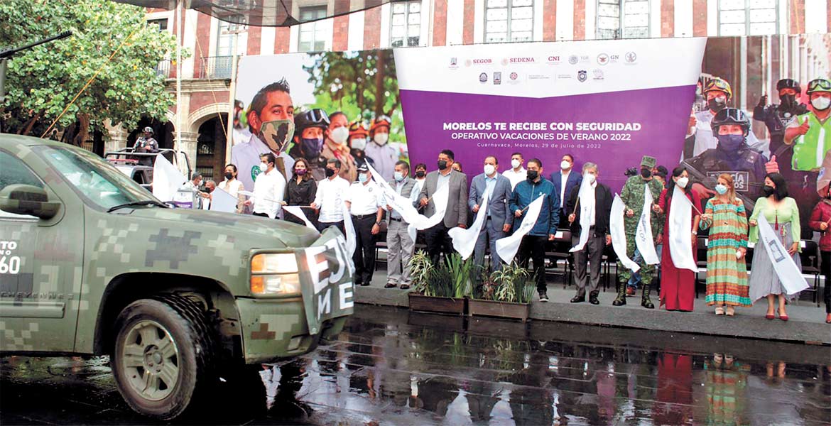 La Plaza de Armas ‘General Emiliano Zapata’ fue el punto de encuentro para el inicio del operativo de vacaciones de verano denominado ‘Morelos te recibe con Seguridad’.