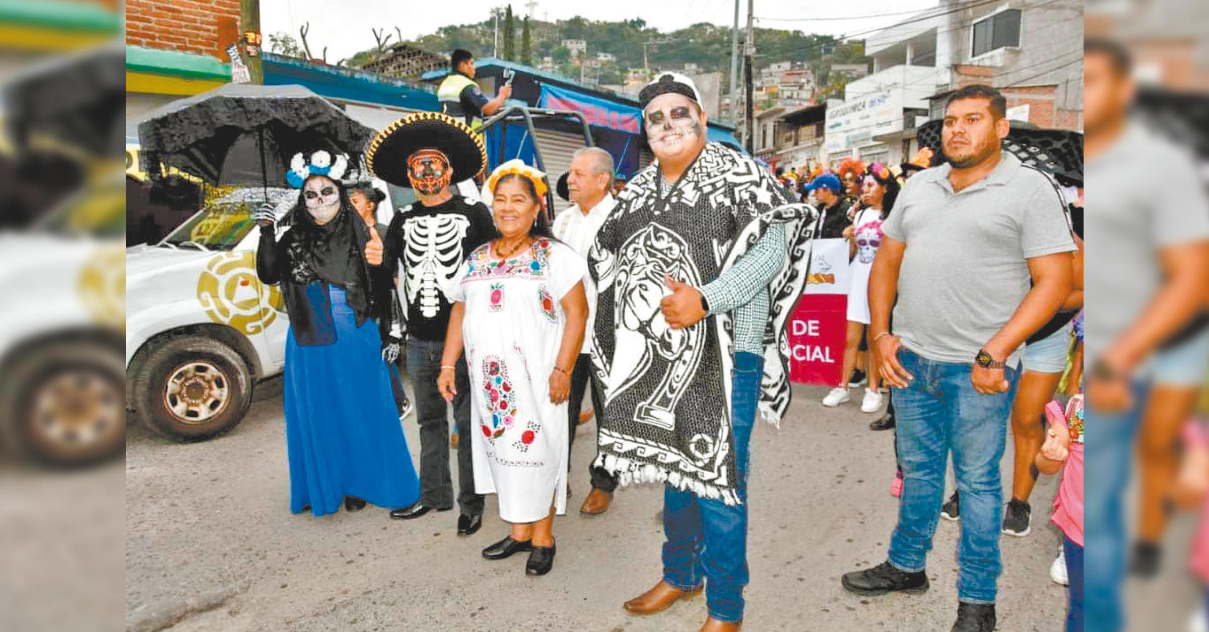 La alcaldesa Juanita Ocampo Domínguez encabezó el desfile de catrinas y catrines en el municipio de Temixco, donde estuvo acompañada de funcionarios de su gabinete y servidores públicos municipales, así como cientos de temixquenses.