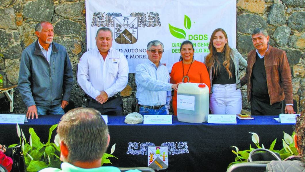 Asimismo, el funcionario universitario hizo entrega de 100 litros de aceite vegetal de cocina que se generó en los establecimientos de comida de la UAEM.