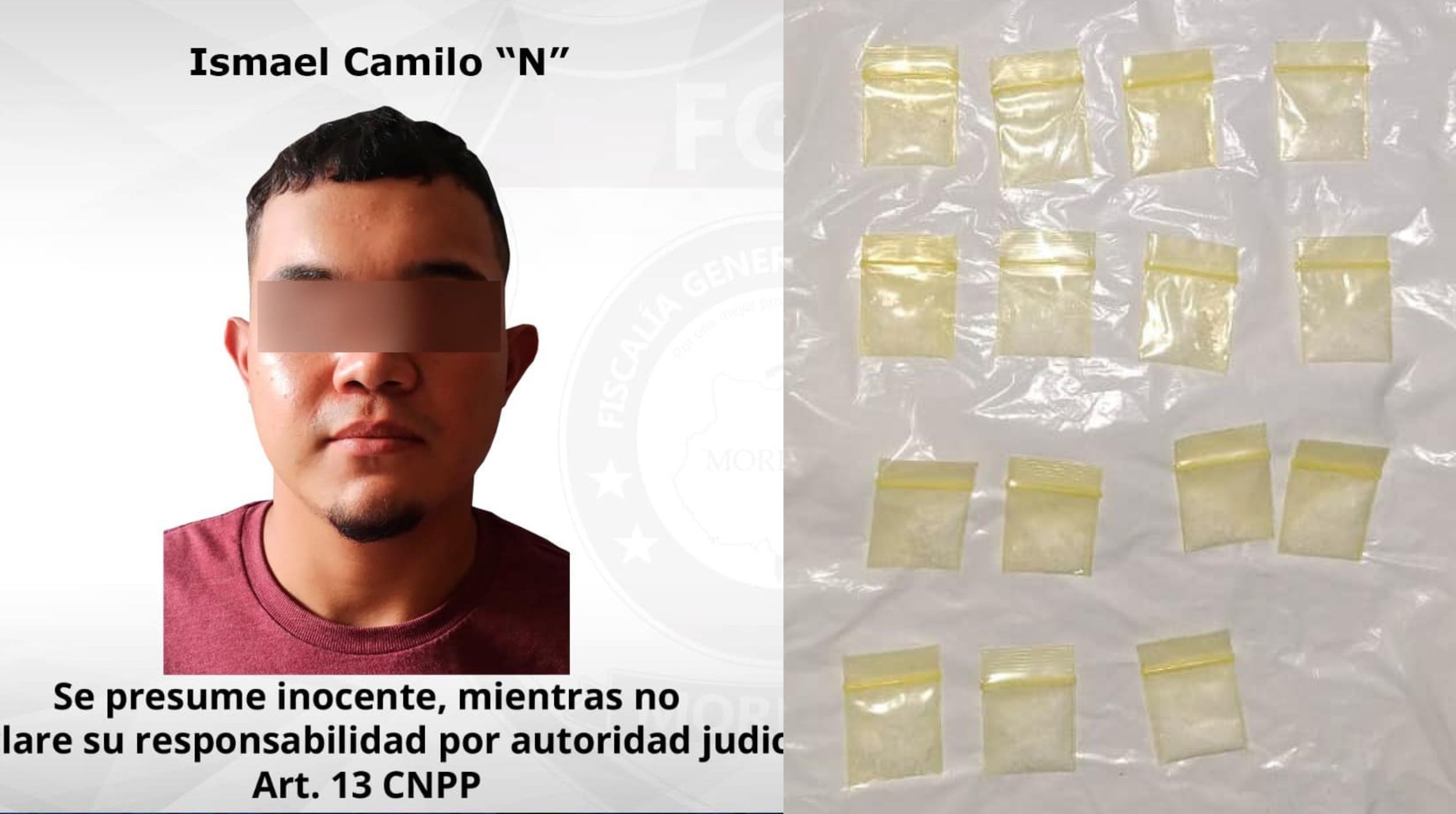 De los hechos, la tarde del 24 de abril, elementos de la policía de Cuernavaca patrullaban la colonia San Miguel Acapatzingo, siendo en la calle Ejido que vieron a un hombre que contaba pequeñas bolsas plásticas, quien al percatarse de la presencia de los uniformados guardó las bolsitas en su pantalón y se echó a correr, pero fue asegurado.