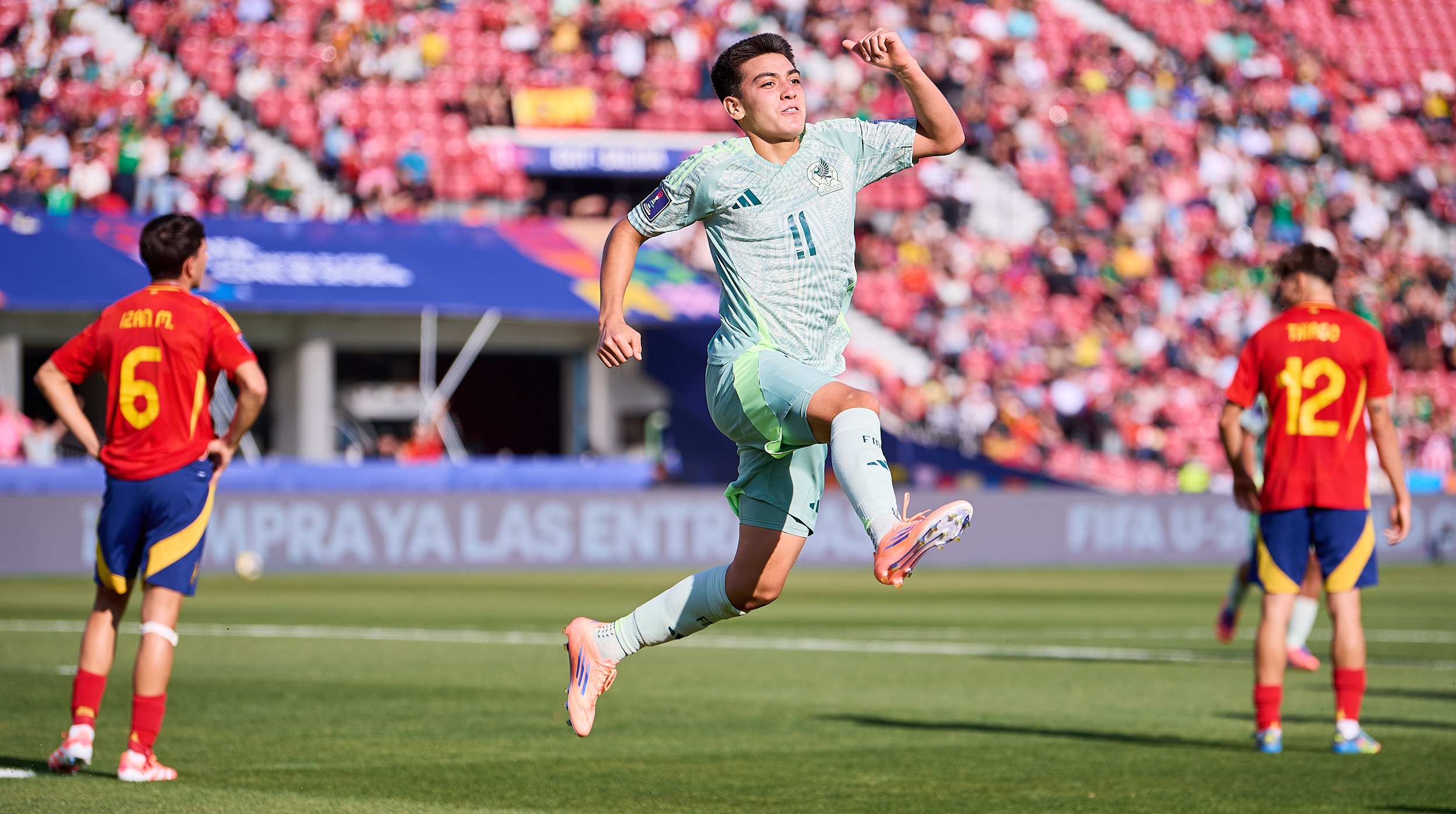 México se adelantó al minuto 32, cuando Mora desbordó la zaga ibérica y definió con gran frialdad frente al arquero español. La respuesta llegó antes del descanso: Pablo García sacó un disparo de media distancia que se coló en el ángulo para poner el 1-1 al minuto 42.