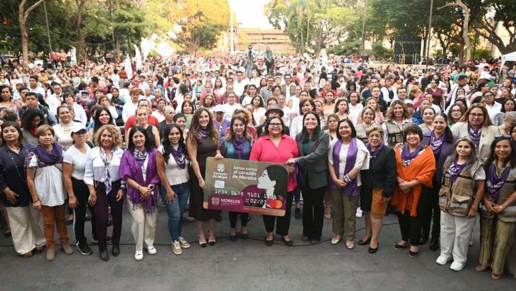 Cuernavaca.- Como parte de las políticas públicas que implementa la gobernadora Margarita González Saravia, esta tarde, en un evento masivo en la Plaza de Armas “General Emiliano Zapata Salazar”, ubicada en Cuernavaca, se formalizó la presentación del programa “Corazón de Mujer”, que beneficiará con un respaldo económico bimestral, descuentos en establecimientos y trámites, así como apoyo para gastos funerarios a miles de ciudadanas de entre 55 a 59 años de edad.
