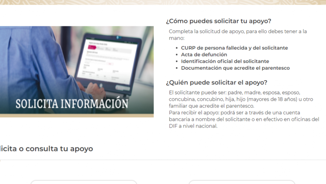 Entreo los requisitos, están primeramente, que los familiares de la persona que solicita el apoyo debe ser mayor de edad y debe ingresar a la página www.deudoscovid.gob.mx desde el día de ayer. Las personas que deseen solicitar el apoyo tienen hasta un año a partir de la muerte del familiar, para ser parte del programa, que brinda dar apoyo para los más vulnerables.