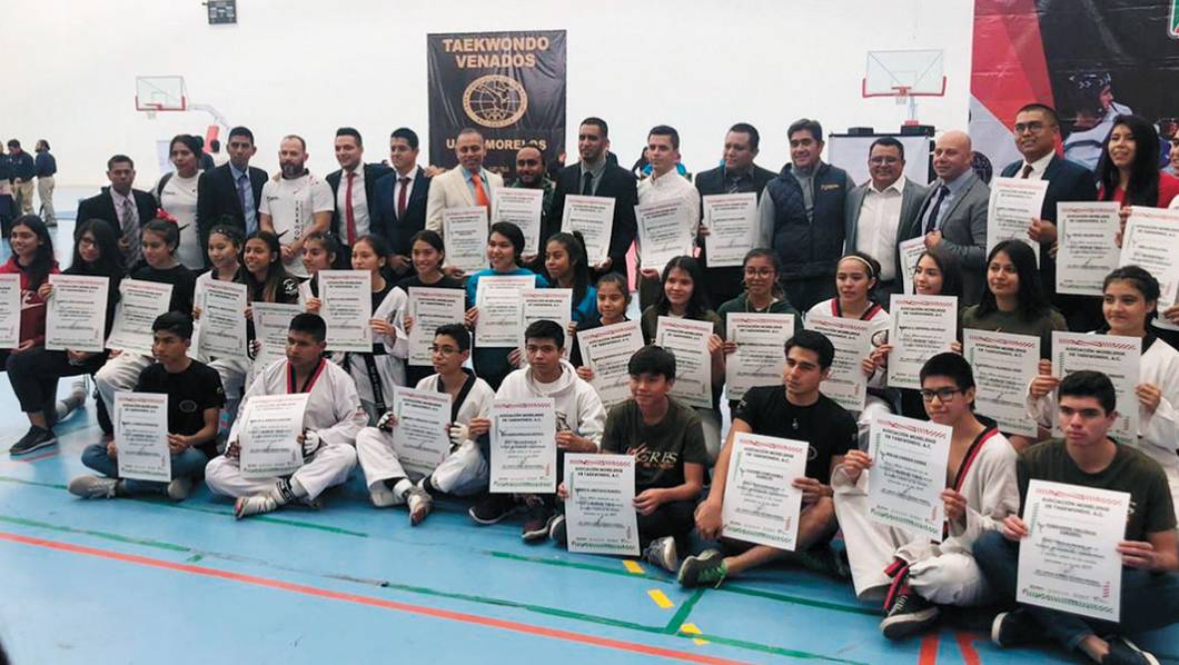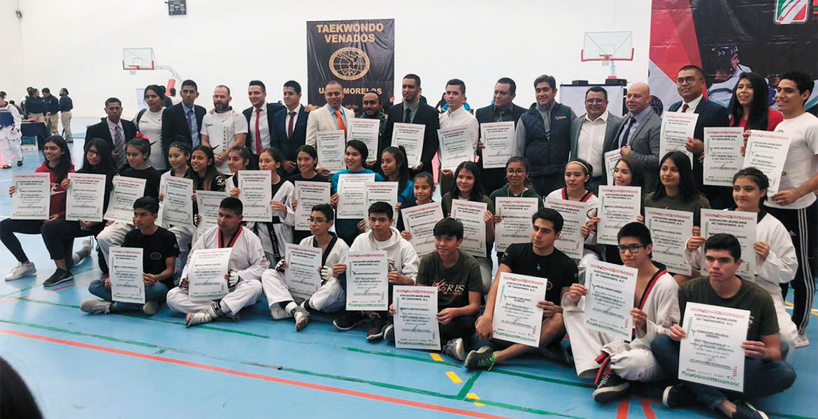 Cuernavaca.- El polideportivo 1 de la Universidad Autónoma del Estado de Morelos (UAEM) fue el escenario para reconocer a atletas y entrenadores de taekwondo.