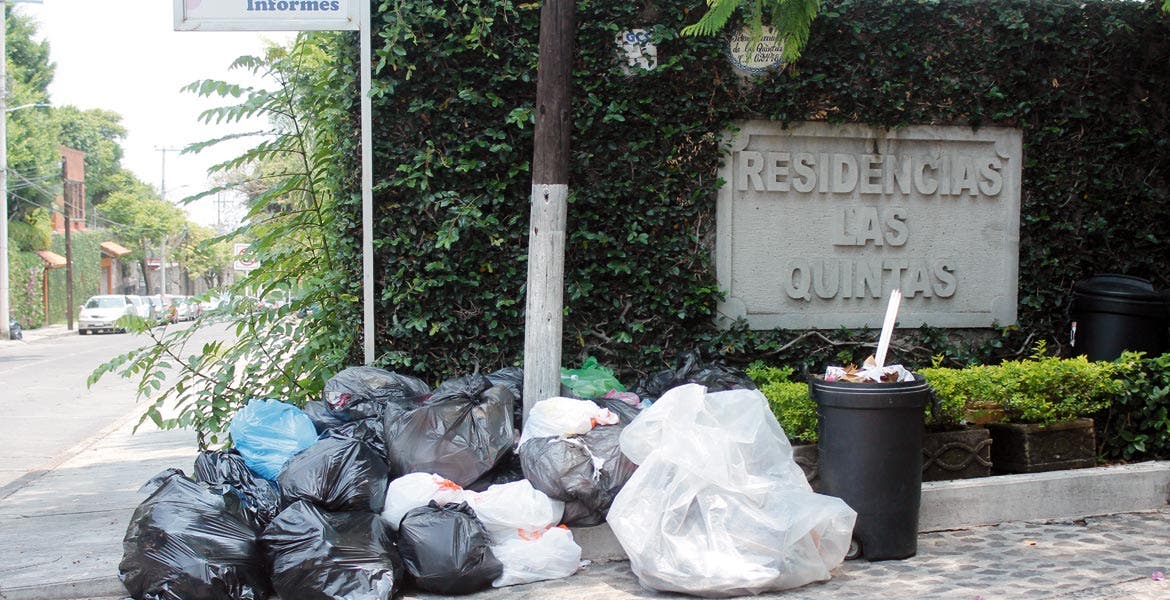 Así el aspecto en la avenida Atlacomulco, donde vecinos sacan su basura, esperando se las lleve el camión recolector, y mientras estorban el paso peatonal.